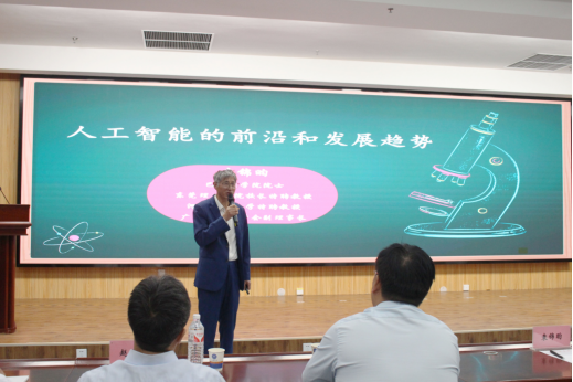随后,袁锦昀在我校行政楼一楼东报告厅为数学与统计学院的学生与部分教师作了《人工智能的前沿和发展趋势》的报告。杨钧、赵伟杰,人事处处长赵国喜、数学与统计学院全体班子成员及部分师生聆听了报告。数学与统计学院院长张之正教授主持报告。