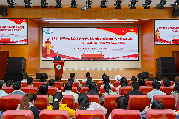 2020年11月19日,云南大学党委书记林文勋以“从时代榜样中汲取精神力量和人生启迪——学习张桂梅老师先进事迹”为题,与同学们同上一堂思政课。
