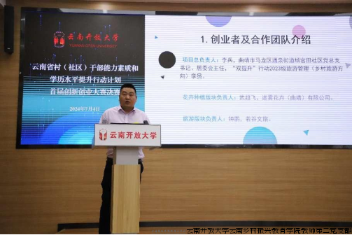 曲靖市马龙区通泉街道杨官田社区党总支书记、主任李兵,正是云南开放大学“双提升”行动2023级旅游管理(乡村旅游方向)本科学员。在我校2024年7月5日举办的“双提升”行动首届创新创业大赛中,李兵学员凭借其“杨官田社区土瓜冲花卉种植与乡村旅游一体化项目”实践脱颖而出,荣获金奖。李兵学以致用,以创新思维和扎实工作,将土瓜冲村从一个默默无闻的“空心村”,打造成为乡村旅居示范村。