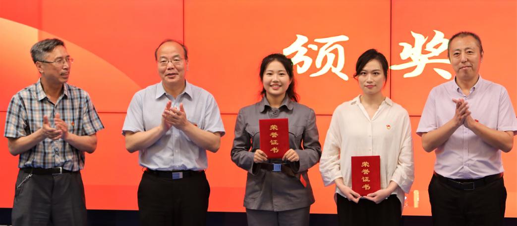 裴鸣书记宣布比赛结果。《活报剧:<红楼钟声>》与《有你们中国是不会亡的》获得一等奖;《我用残损的手掌》等三个节目获得二等奖;《西去列车的窗口》等五个节目获得三等奖;《可爱的中国》(节选)等十个节目获得优秀奖。刘守训副校长,张晶院长、裴鸣书记、张婧副院长等一同为获奖选手颁奖。