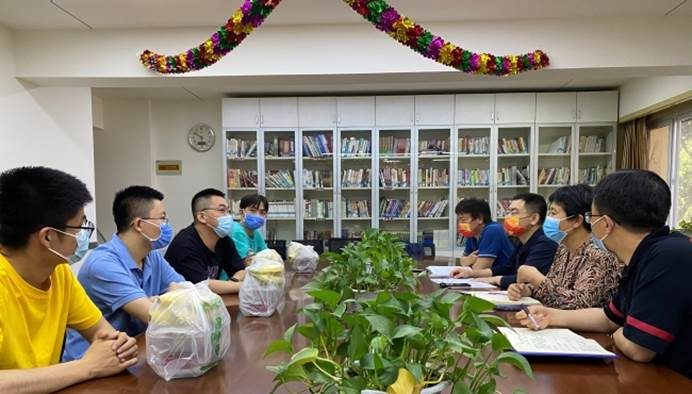 在聆听各位志愿者的介绍后,学院党委书记孟庆芬充分肯定了能源学子在疫情防控中所做的贡献,她指出,志愿者是这场“没有硝烟的战争”中的“战士”,各位志愿者的忙碌的身影是这个初夏北地校园里最美的风景。石油工程教研室主任胡景宏与各位志愿者亲切交谈,赞扬了各位志愿者在紧张忙碌的学习生活之余,仍能化身学校“小蓝”“大白”为抗击新冠疫情贡献力量的青年责任与担当。随后还叮嘱大家要保重身体,同时向大家致以端午佳节的祝福。石油地质教工第一党支部书记王海荣则从自身经历入手,表示充分理解疫情当下的师生精神状态、生活需求、学习科研情况及个性化要求。他指出,志愿者为校园防疫舍小家为大家;志愿者们有困难可随时向学院反馈,学院会尽所能为志愿者排忧解难,同心抗疫!最后,学院副院长许浩结合当前防疫实际情况,鼓舞志愿者们的后续工作。他表示,志愿者们要再接再厉,动员更多能源学子参与到校园志愿者的工作中,以实际行动践行新时代青年人的担当和作为。
