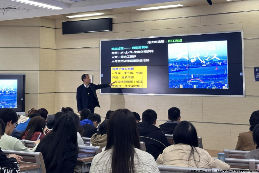 在授课过程中,谢院士特别讲述了我校在探索大河文明与地学作为方面的贡献。他介绍了学校围绕长江流域开展的多项研究计划和相关平台,以及在服务国家重大区域发展战略、推动长江经济带发展等方面的积极作用,强调未来要形成流域发展世界样板的长江方案,展现地大师生的担当与作为,为深入理解大河文明提供科学依据,也为区域发展提供有力的智力支持。