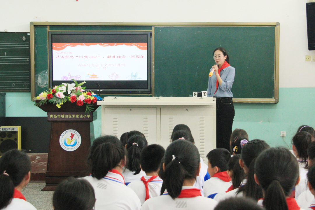 开展党史学习教育以来,宣讲团面向校内8个学院(学部)以及青岛太平路小学,青岛市崂山区实验小学、第二实验小学、第三实验小学、张村河小学、朱家洼小学等6所小学和青岛市崂山区第三中学、第十中学等2所中学进行了共计近30次宣讲活动。