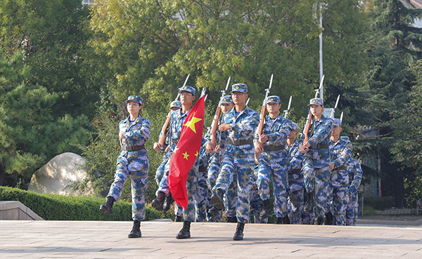 国庆节当天,中国海洋大学在校园内和航行中的“东方红”系列科考船上同时举行升国旗仪式,通过仪式育人,强化“谋海济国”的价值追求。