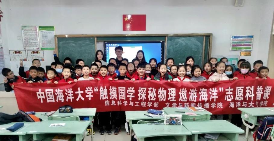11月11日,中国海洋大学“触摸国学 探秘物理 遨游海洋”志愿科普课第一期顺利举行,7名志愿者共3支小队走进青岛市红岛中心小学和上马街道西部中心幼儿园,为同学们送去了3堂以“海洋”为主题的精彩课程。志愿者结合自身专业所学,以视频、手工等多种形式向同学们展示了丰富的海洋世界。
