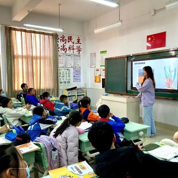 前往红岛中心小学的志愿者刘腾、王亚男以问答小游戏为引入,开启了有趣的海洋课堂。他们借助动画片中常见的海洋动物,引起同学们学习海洋生物的兴趣。接着介绍了海洋动物分类等知识,而后深入讲解了腹足纲、头足纲等软体动物的区别。最后联系海洋污染这一环境问题,教育孩子们了解海洋,爱护海洋。在课堂上,同学们积极举手和老师进行互动,下课后还围在老师身边进行提问。