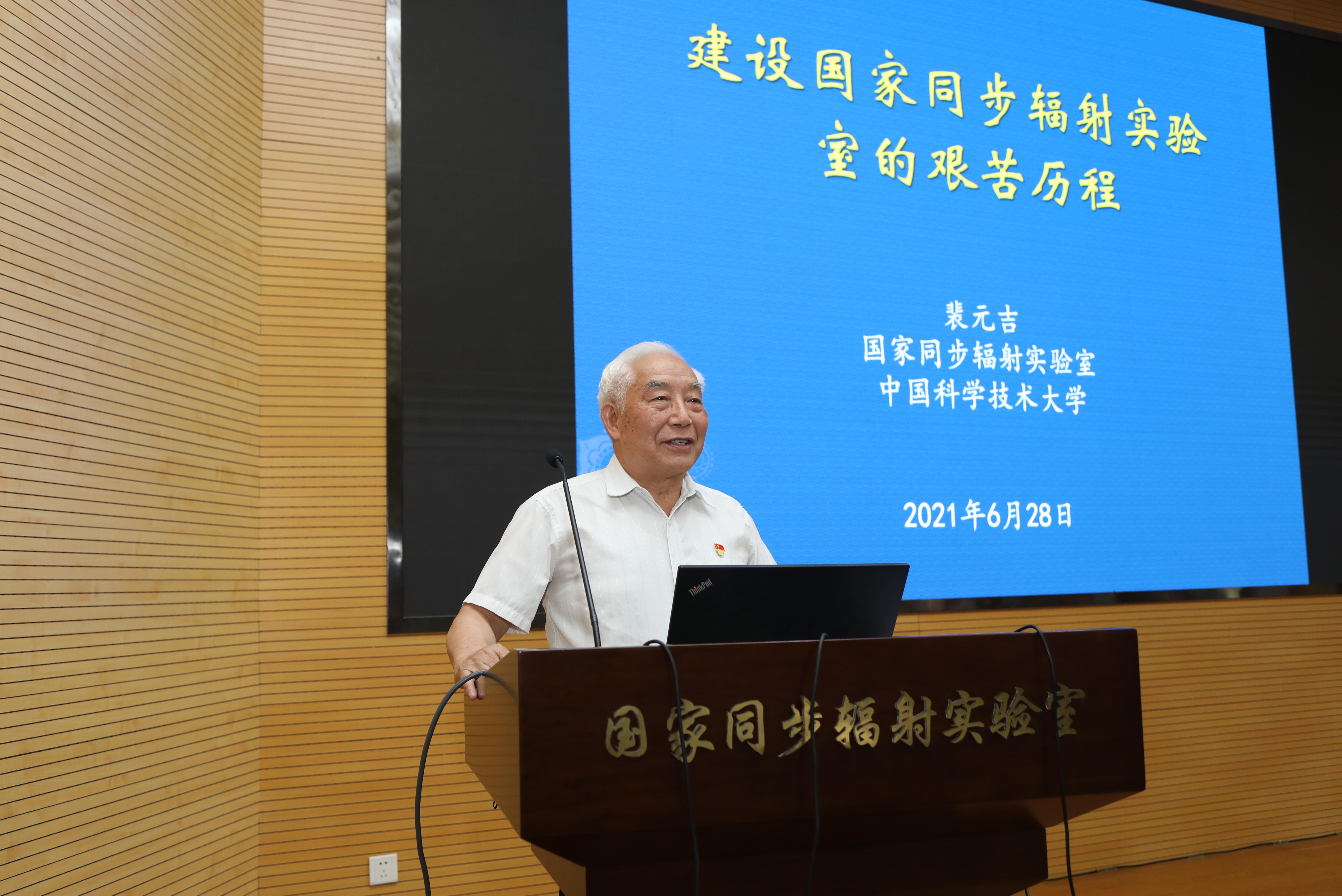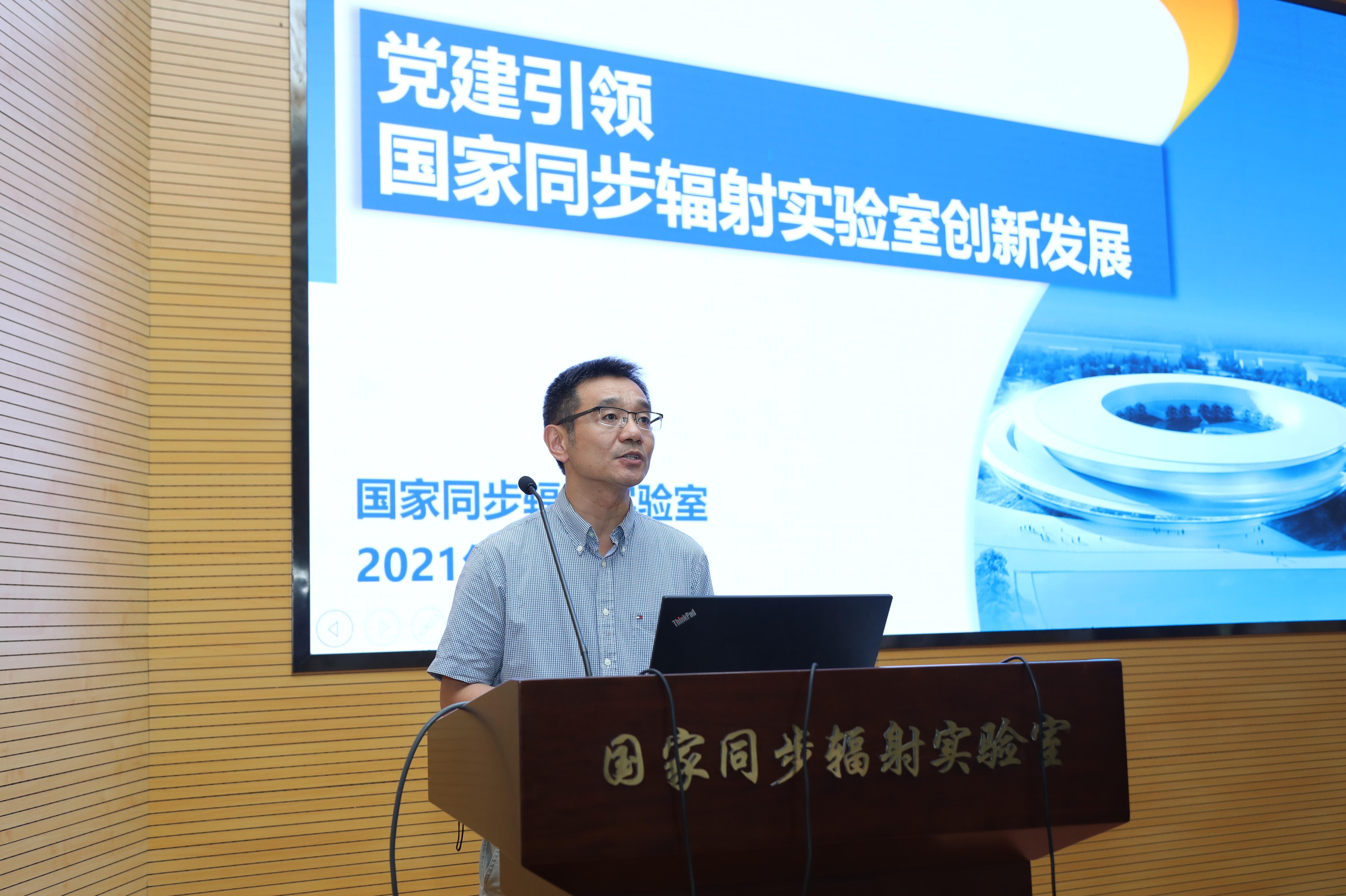 在“传承老一辈科学家精神,弘扬新时代科学家精神”学习环节,国家同步辐射实验室老一辈科学家、59级校友裴元吉研究员饱含深情地回顾讲述了国家同步辐射实验室的建设发展史,带领大家重温感悟那段攻坚克难、矢志奋斗、为国争光、永攀高峰的光荣岁月。国家同步辐射实验室党委书记、副主任李良彬作《党建引领国家同步辐射实验室建设》报告,详尽介绍了实验室的基本概况、发展现状和未来前景,并汇报了实验室党史学习教育的开展情况。