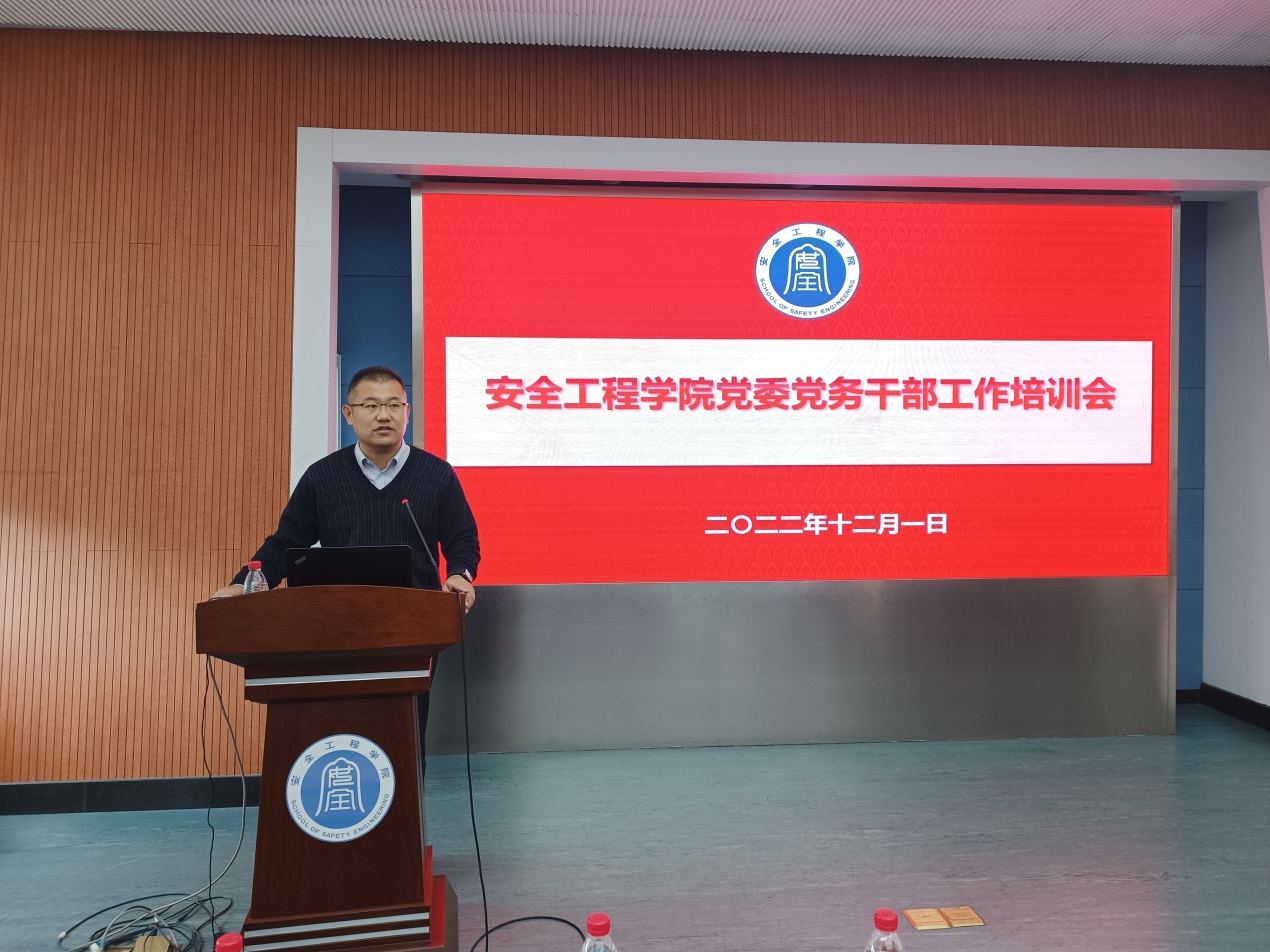 12月1日下午,安全工程学院党委在矿业科学中心A200报告厅举办党务干部工作培训会,会上,邀请校党委宣传部副部长刘尧作报告。学院党委委员,各党支部支委,专兼职辅导员和团学组织学生党员代表参加了培训会,会议由院党委书记曲颂主持。