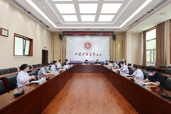 本网讯 6月15日,第八次北京市党的建设和思想政治工作先进普通高等学校评选考察组来到中国矿业大学(北京),通过听取汇报、查阅资料、座谈访谈、实地考察等方式,全面检查学校贯彻落实《北京普通高等学校党建和思想政治工作基本标准》和开展党建和思想政治工作情况。