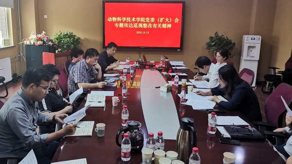 本网讯 9月15日,动科学院召开党委(扩大)会暨中心组理论专题学习动员并深入研究巡视整改工作方案。学院党委委员、领导班子成员、教工党支部书记、行政科室负责人等参加了会议,会议由学院党委书记郭晓旭主持。