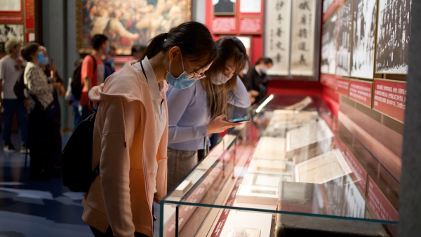 党的辉煌历史是最好的营养剂、最有说服力的教科书,水利与土木工程学院2019级硕士研究生郝泽发现:从《马关条约》的原稿、李大钊就义绞刑台原件,到朱德自用手枪原件、毛主席开国大典时穿的服装,再到深交所开市的吊钟、习总书记考察部队戴过的头盔...大量极为珍贵的历史文物原件让我在中国共产党历史展览馆内能够全方位、全过程、全景式、沉浸式学习中国共产党波澜壮阔的百年历程。当我越是深入的去了解中国共产党,越能真切的感受到这个政党的伟大。身逢盛世,重任在肩,作为一名青年党员,我们肩负党和人民赋予我们的使命和责任,要在工作和学习中敢于创新,勇攀高峰,为实现下一个百年奋斗目标贡献青春力量!(摄影:赵效北 郝泽)