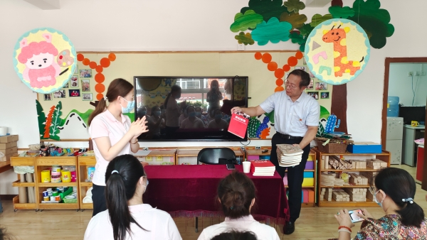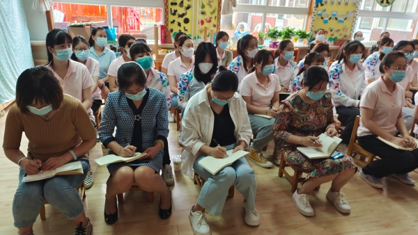 西区幼儿园园长叶霜红,副园长王颖、宋红梅,幼儿园全体团员参加学习活动。
