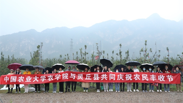 同天,我院师生分别在北京平谷、山西灵丘等地参加中国农民丰收节系列庆祝活动。上午7时,农学院乡村振兴专项班的同学到达平谷区金海湖国际会展中心,为北京市中国农民丰收节系列庆祝活动顺利开幕提供保障服务。专项班同学以志愿者身份,协助防疫工作,引导参观党史党建资料展、北京优农品牌+平谷好物展示区等各个展区,并为现场观看VCR农民晒丰收、原创评剧表演、连线国桃基地丰收现场等活动提供志愿保障。