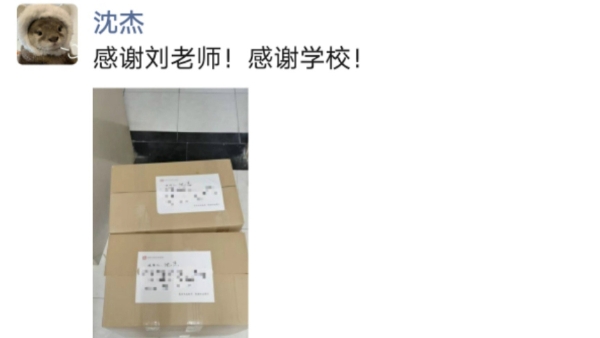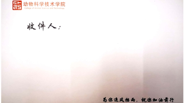 此外,学院还专门印制“为你遮风挡雨 祝你加油前行”的收件贴纸,用于贴在打包箱上,便于记录人员姓名,并鼓励老师们在上面书写对同学们的祝福、寄语。
