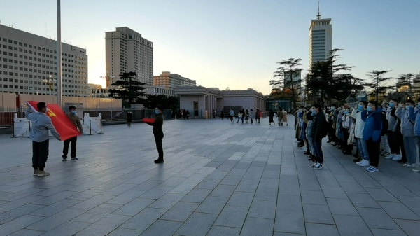 在参观结束后,同学们来到军博正门的广场前,全体预备党员在姚炳乾老师的带领下面向党旗庄严宣誓。习近平总书记曾说:“入党誓词字数不多,记住并不难,难的是终身坚守。每个党员要牢记入党誓词,经常加以对照,坚定不移,终生不渝”。希望每位党员都能牢记自我的承诺,勿忘并践行誓言,永葆共产党员的先进性,牢记宗旨,强化党的观念,增强党员意识,遵守党的纪律,进一步发挥学生党员先锋模范作用。