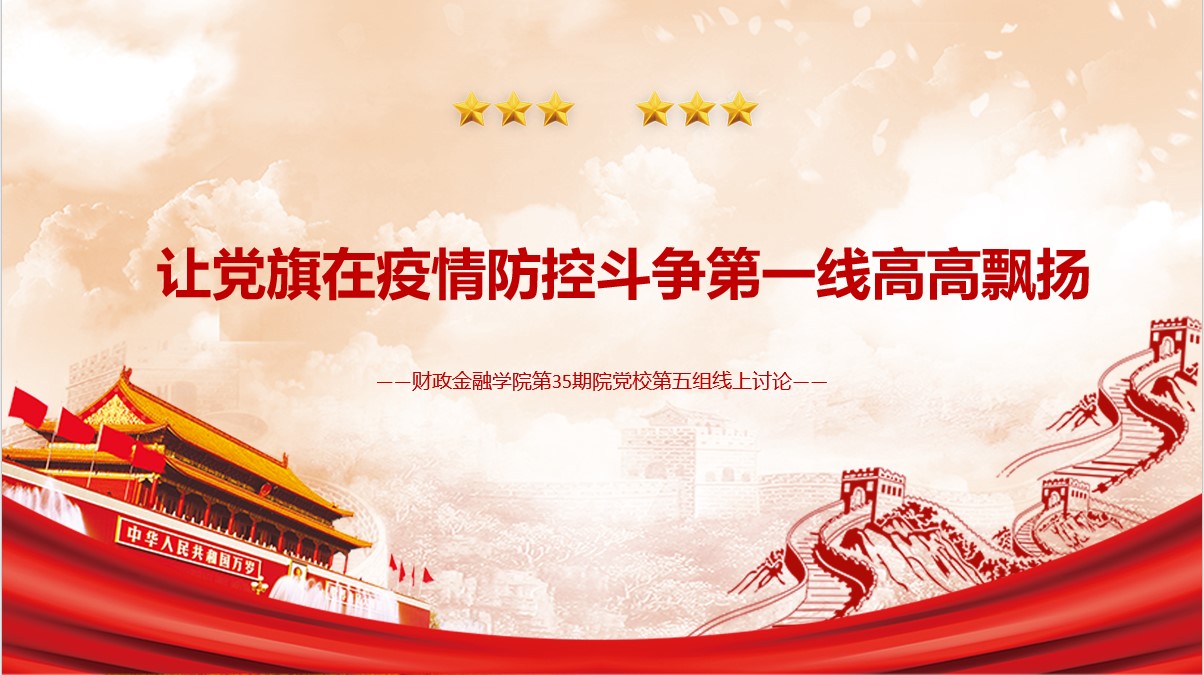 4月18日至19日,财政金融学院第三十五期院党校十二个学习小组纷纷开展了以“让党旗在疫情防控斗争第一线高高飘扬”为主题的讨论展示课,本次展示课通过腾讯会议平台线上举行,由各小组组长分别担任会议主持人。