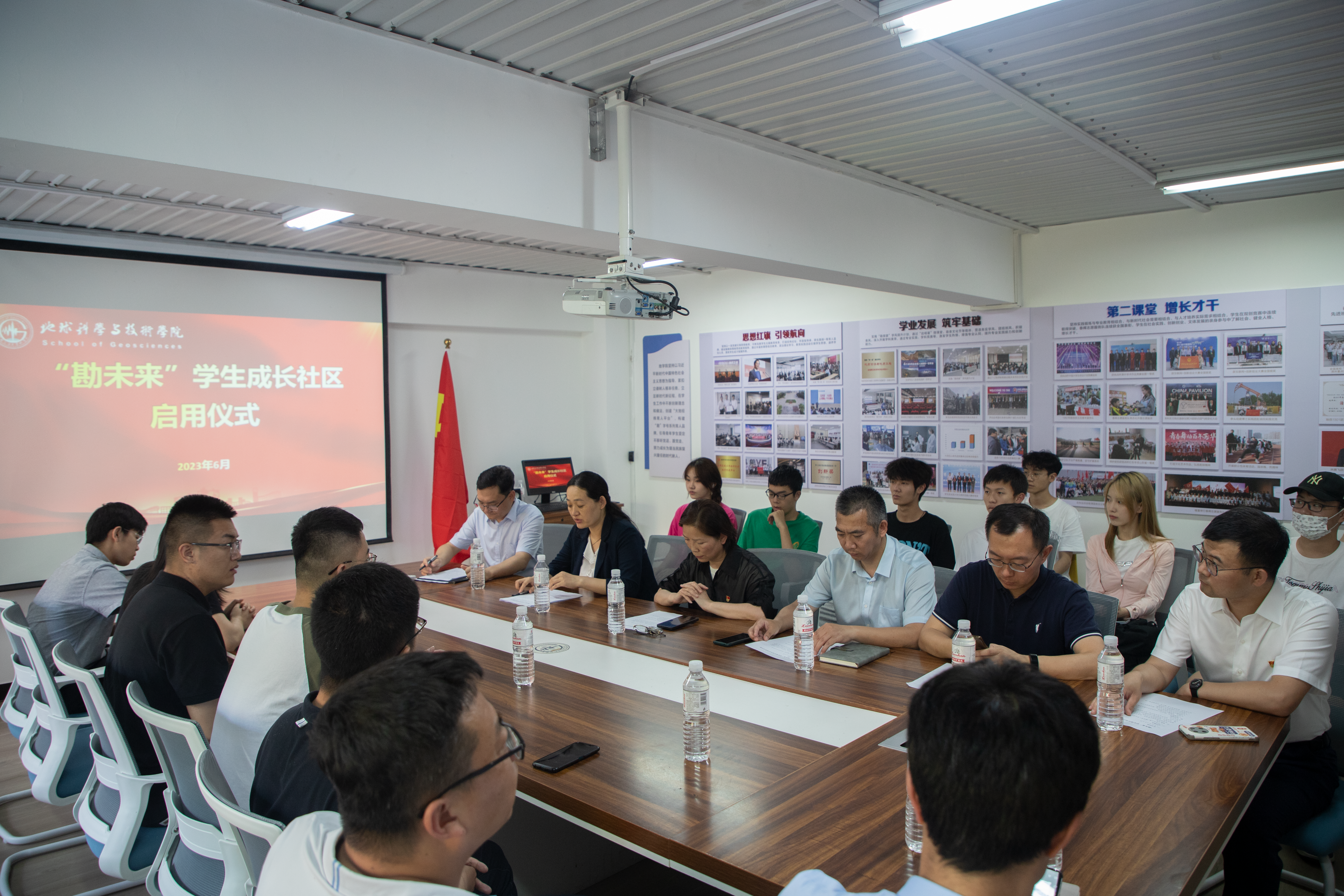 6月21日下午,学院“勘未来”学生成长社区启用仪式在11号学生公寓“勘未来”学生成长社区会议室举行。学校党委组织部副部长梁秀萍、党委学生工作部(武装部)副部长张程、校团委副书记石国卿、学院党委副书记郑珊珊、马克思主义学院形势与政策教研室主任郎帅,学院辅导员代表、社区学生党支部、团支部代表、社区学生代表以及各学院观摩代表参加启用仪式。