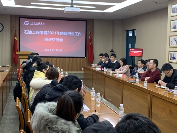 为加快培养适应创新型国家建设需要的高水平创新人才营造良好开局,充分做好2021年“互联网+”“挑战杯”备赛工作,1月8日,石工学院于工科B347会议室举行2021年创新创业工作座谈会,校团委副书记石国卿、学院党委副书记赵晓珂、学院2020年大赛获奖团队“粒”挽狂澜、“智源压裂”团队代表及学院师生代表出席座谈会,学院团委书记单珣主持会议。