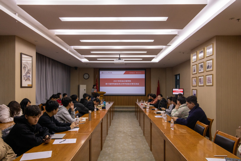 本次活动邀请石油工程设计大赛“卓越杯”团队成员、学校“学术十杰”称号获得者、研究生国家奖学金获得者等优秀研究生代表就科研方向、竞赛经验、论文写作、学生工作等方面进行分享交流。研究生国家奖学金、第二届“华数杯”全国大学生建模挑战赛一等奖获得者,19级硕士研究生赵淑星表示:“在研究生学习期间,要学会合理计划每个阶段的目标并提高工作效率,制定好的计划要按时完成,同时,要注重培养自身的沟通和表达能力,不要只会埋头做事而不会抬头做人。” 第十一届石油工程设计大赛“卓越杯”团队成员、研究生国家奖学金、“华为杯”第十六届中国研究生数学建模竞赛国家级二等奖获得者,19级硕士研究生贾晓涵就参赛心得和收获进行现场分享:“参赛过程中一定要合理安排工作进度,放平心态、稳步向前,同时需要团队所有成员的共同努力。除了所获得的荣誉奖励,参赛的过程也是一个应用实践的过程,这将使你收获颇丰。”“学术十杰”、研究生国家奖学金获得者,17级博士研究生赵二猛则就自身在研究生学习阶段的一些心得进行分享:“研究生阶段不同于本科生,需要有自己的思考和逻辑,不仅仅是跟着老师走,更要学会自己走。在研究生科研工作中,打好基础是至关重要的,戒骄戒躁、脚踏实地才能走得更远,希望在座的各位能在科研大道上走出属于自己的那一条道路。”