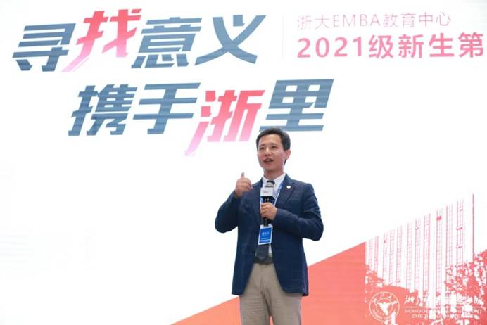 6月26日上午,浙江大学管理学院新大楼内,浙大EMBA教育中心“寻找意义,携手浙里”2021级新生第一课开讲。