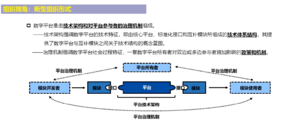 平台组织应该具有自治理的功能,因为创新非常快、渠道响应非常快。要给平台组织发挥基础设施的功能,第一方面国家监管,第二方面要给它赋能。要给平台组织具有准合法性的身份,具体来讲叫责权分配、控制机制、定价策略。要做好这三方面的治理,分配机制是在平台内部的参与者、平台互补者、决策者、知识产权等等都得要有重新来制定建立一套在平台组织内部数字化的一套系统。