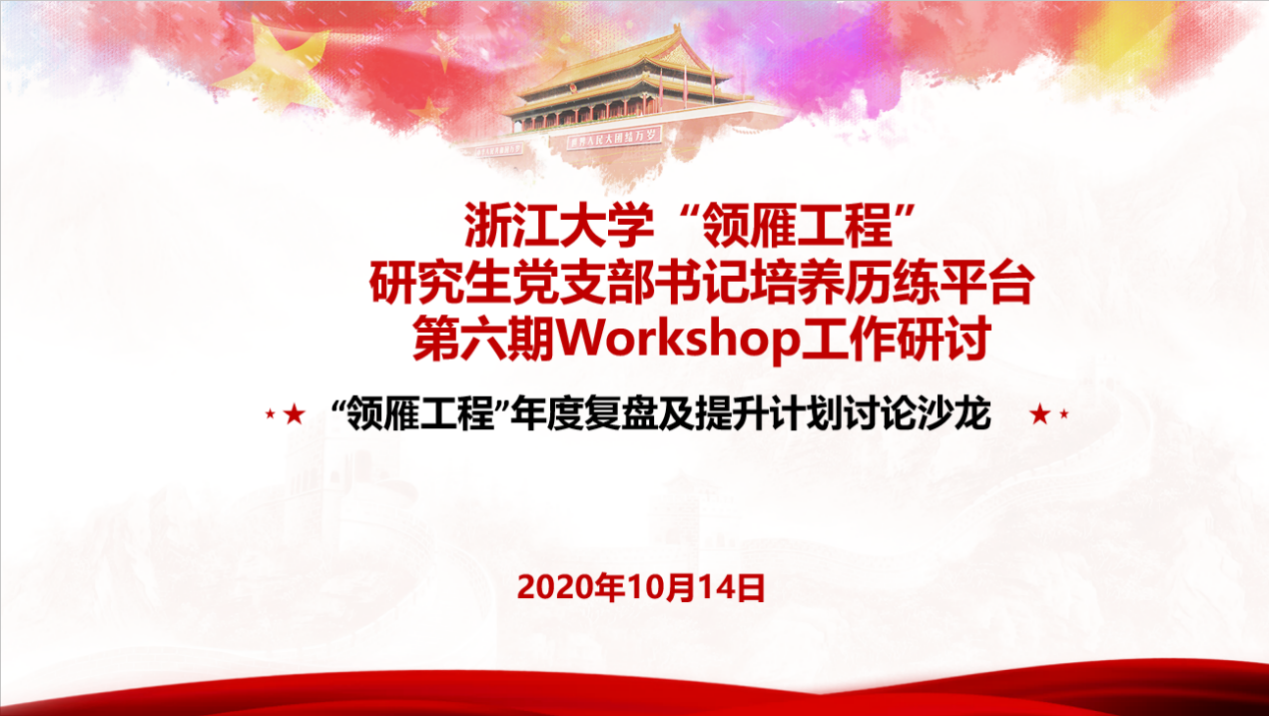 为深入学习贯彻习近平新时代中国特色社会主义思想和党的十九大精神,巩固“不忘初心、牢记使命”主题教育成果,夯实基层党组织建设。2020年10月14日,由浙江大学党委研究生工作部主办,机械工程学院承办的“领雁工程”第六期研究生党支部书记Workshop工作研讨顺利举办。