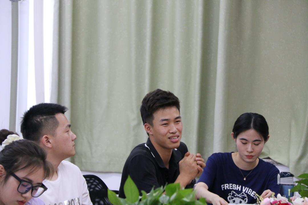 活动中,毕业生党员与新发展的在校生党员进行了交流互动。每一位毕业生党员都回顾了自己在浙纺服的青春与足迹,向学弟学妹们分享了自己在实习期及专升本复习中的心得体会。