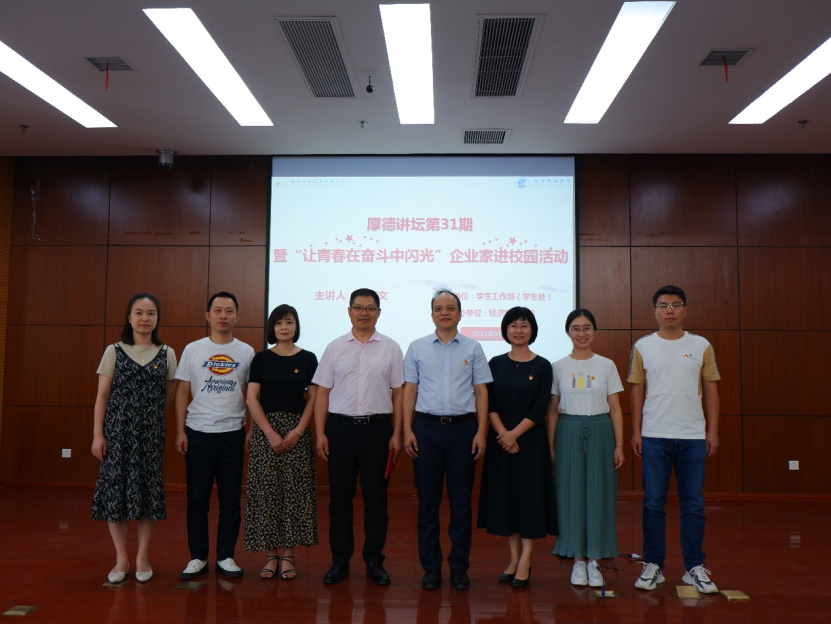 为进一步激发学生成长动力,规划职业发展目标,把准人生发展航向,2021年9月22日下午由学工部主办、经济管理学院承办的我校第31期厚德讲坛暨“让青春在奋斗中闪光”企业家进校园活动在中和楼217如期举行,经济管理学院党总支书记励业、学工部副部长包培红、经济管理学院全体辅导员、学院学生代表等参加了本次活动。本次讲座由经济管理学院党总支副书记丁佩芬主持。