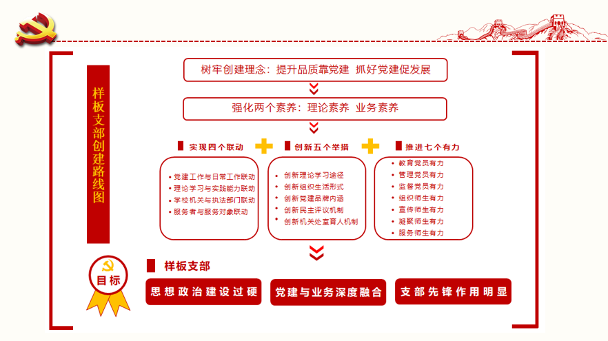 自2019年入选教育部“全国党建工作样板支部”培育创建单位以来,保卫处党支部在学校、机关党委的领导和大力支持下,坚持以习近平新时代中国特色社会主义思想为指导,根据申报时确立的目标任务,紧紧围绕教育党员有力、管理党员有力、监督党员有力、组织师生有力、宣传师生有力、凝聚师生有力、服务师生有力等“七个有力”建设要求,以“融入中心、突出重心、深入人心”为工作主线,以“警校共建党员服务站”为平台,扎实推进“警校共建品牌化、疫情防控常态化、理论学习立体化、队伍建设专业化”四化建设,精耕细作,凝心聚力,基本建成“思想政治建设过硬、党建工作基础扎实、业务工作有亮点实效、服务育人作用明显”的样板支部,充分发挥了党员先锋模范作用和支部的战斗堡垒作用。