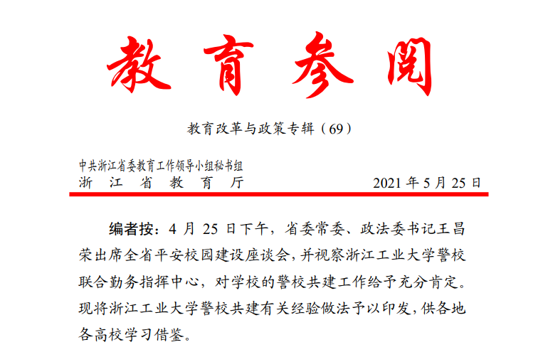 近日,教育部办公厅印发了《关于公布第二批全国党建工作示范高校、标杆院系、样板支部培育创建单位验收通过名单的通知》(教思政厅函〔2022〕12号)。经建设单位对标自查总结、省级党委教育工作部门把关审核、教育部思想政治工作司审查,浙江工业大学机关党委保卫处党支部顺利通过第二批“全国党建工作样板支部”建设单位验收。