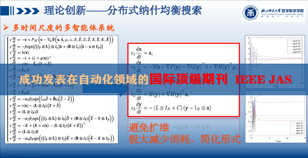黄邦华不断夯实基础,勇于理论创新。在分布式优化与博弈领域,积极与欧洲科学院院士合作,提出的“双时间尺度的多智能体系统”在解决分布式全局优化问题中展现巨大潜力,显著减少了智能体的消耗,并成功发表在人工智能领域的顶级期刊《NEURAL NETWORKS》上。在博弈领域提出的“多时间尺度的多智能体系统”为解决非凸博弈提供了新思路,并在自动化领域的国际顶级期刊《IEEE/CAA Journal of Automatica Sinica》发表。理论成果的创新得到3位IEEE Fellow及2位欧洲科学院院士等知名专家学者的引用。