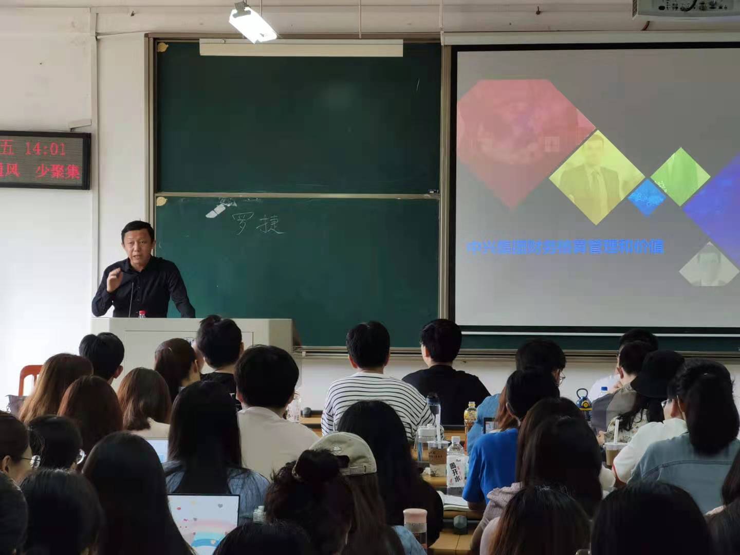 2021年5月14日下午14时,中兴通讯集团核算部部长、中国注册会计师罗捷先生在文添楼303教室为2020级审计专硕等研究生讲述《中兴集团财务核算管理和价值》。该课程由专硕导师组组长季华副教授主持,2020级审计专硕等研究生聆听了相关内容。