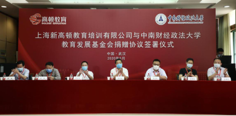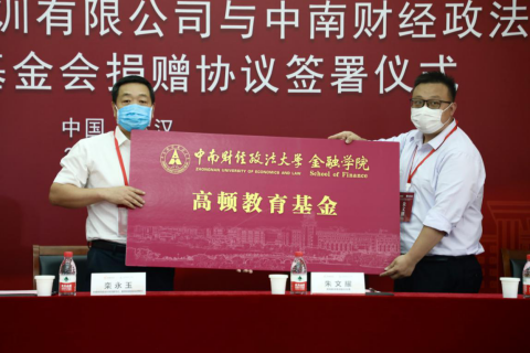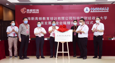 高顿教育集团副总裁朱文耀代表CEO李锋分别与理事长栾永玉签署了《捐赠协议》,与院长余明桂签署了《战略合作协议》。双方共同为“中南财经政法大学文澜 CFA 大讲堂”揭牌。