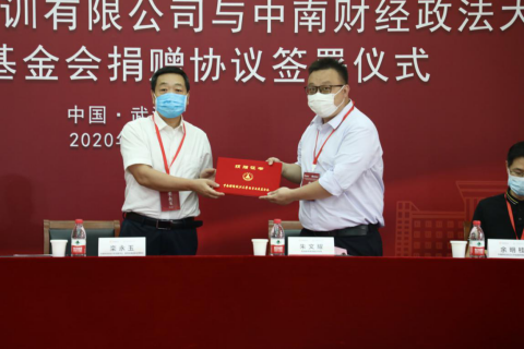 校长杨灿明代表学校对高顿教育集团多年来对我校学子、广大校友和社会进步所作出的巨大贡献表示崇高的敬意。他指出,在学校金融学科设立70周年之际,高顿教育集团为支持中南财经政法大学金融学院早日实现“国内领先、国际一流”的发展愿景和“创造金融新知、培养金融精英、引领金融实践、推动国家发展”的战略使命,向中南财经政法大学教育发展基金会捐款并设立“金融学院高顿教育基金”,为一流金融学科建设鼓足风帆、注入动能。他衷心祝愿高顿教育集团的各项事业蒸蒸日上、捷报频传!