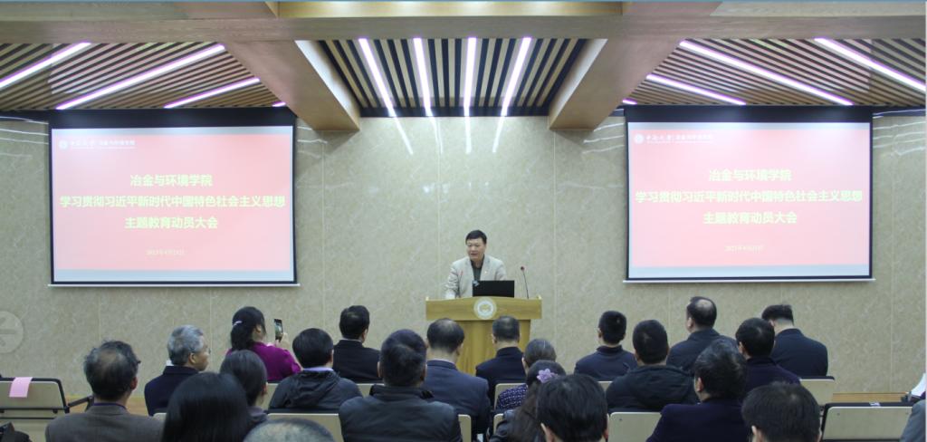 4月23日上午,学院在金贵楼420会议室召开学习贯彻习近平新时代中国特色社会主义思想主题教育动员大会。中南大学学习贯彻习近平新时代中国特色社会主义思想主题教育第二指导组组长刘奇伟,副组长李磊,指导组成员蒋宁、廖宇蕾,学院教职工党员、退休党员代表、学生党员代表参加会议。会议由学院院长闵小波主持。