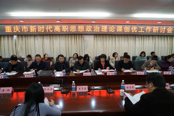 为深入学习贯彻全国学校思想政治理论课教师座谈会的精神,贯彻落实中办国办《关于深化新时代学校思想政治理论课改革创新的若干意见》和教育部党组《“新时代高校思想政治理论课创优行动”工作方案》,2019年11月29日,我校主办的重庆市新时代高职思想政治理论课创优工作研讨会在办公楼第二会议室召开。我校党委副书记张新,中共重庆市委教育工委、重庆市教委宣教处余冠军同志出席,来自全市19所高职院校的马克思主义学院、思想政治理论课教学科研机构负责人和骨干教师60余人参加会议,共同研讨高职思想政治理论课的改革创新。研讨会由我校党委委员、党委宣传网工部部长、马克思主义学院院长喻永均主持。