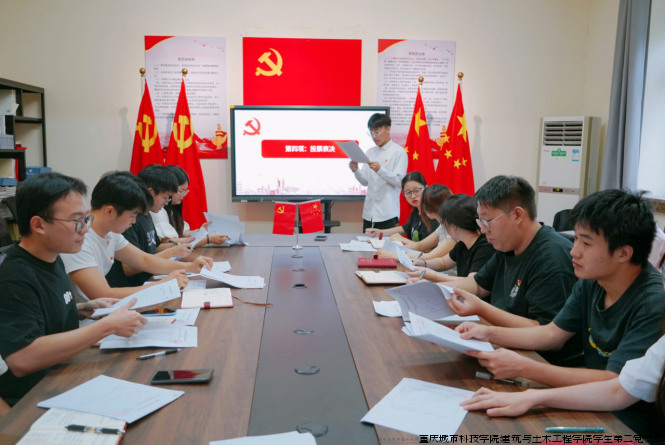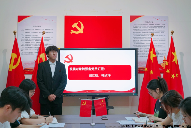 在大会全体党员充分讨论后,支部正式党员对田佳航等九名同志进行无记名投票表决。由冉灵波同志担任监票员,姜鹏同志担任计票员,熊浩同志担任唱票员。经公开计票统计后,田佳航等九名同志赞成票数过半,同意接收田佳航等九名同志为中共预备党员。