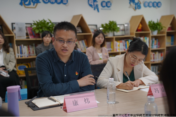 学校党委组织部(统战部)副部长康炜对我院党建工作谈3点建议:一是加强阵地建设,以服务地方发展为落脚点,打造党建平台;二是进一步清晰党建工作思路,建设特色品牌;三是落实 “一岗双责”,推动党建与业务双促进,做出艺术设计党建特色。