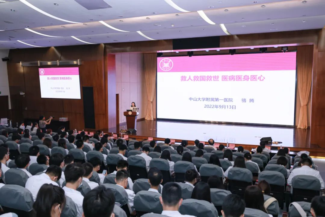 骆腾书记以“救人救国救世,医病医身医心”为主题向全体研究生新生带来了开学第一课。她向同学们娓娓讲述了中山一院的历史与发展。始建于1910年的中山一院,前身是广东公医医学专门学校附设公医院,由广州民间乡绅捐建,公医救人,立志救尽患病国人,医院设立的初衷是实现由国人独立自主地为贫苦百姓提供医疗服务。
