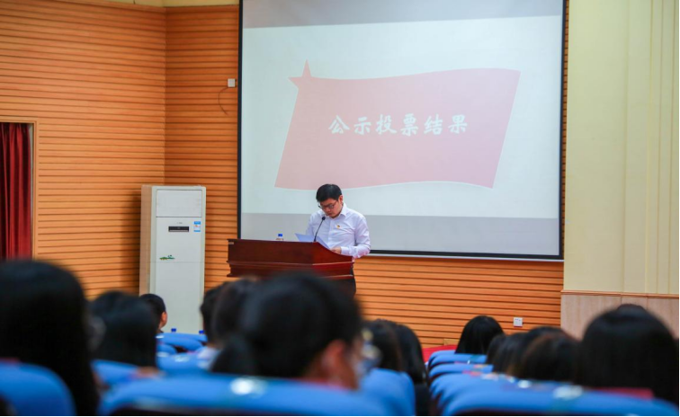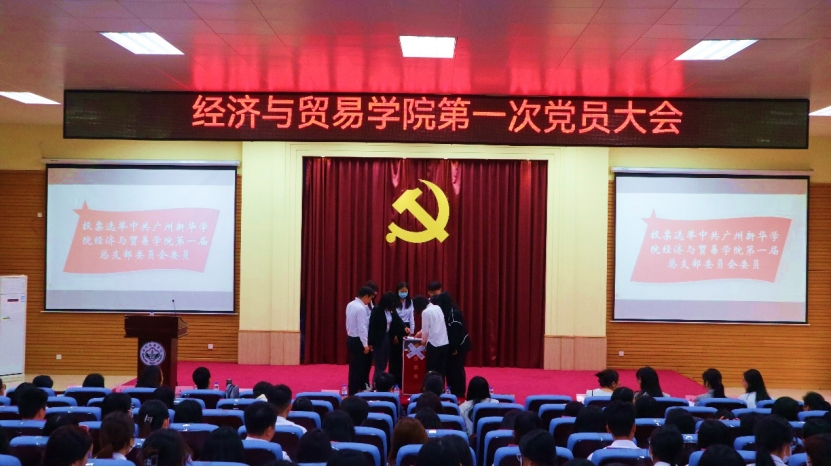 大会第七项议程,经计票人员统计票数,监票人员核对票数,投票表决结果显示,大会选举袁持平、吴喜龄、李海峰、李芳凤、蔡婕萍五位党员同志为中共广州新华学院经济与贸易学院第一届党总支委员会委员。