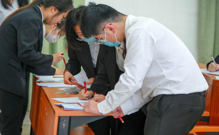 大会第六项议程,投票选举中国共产党广州新华学院经济与贸易学院第一届党支部委员会委员。监票组等人员当场检查投票箱是否完好,确认无误后与会党员充分行使选举权利,依次上台进行不记名投票。党员同志们投票完毕后,监票组和计票组开箱进行监票和计票。