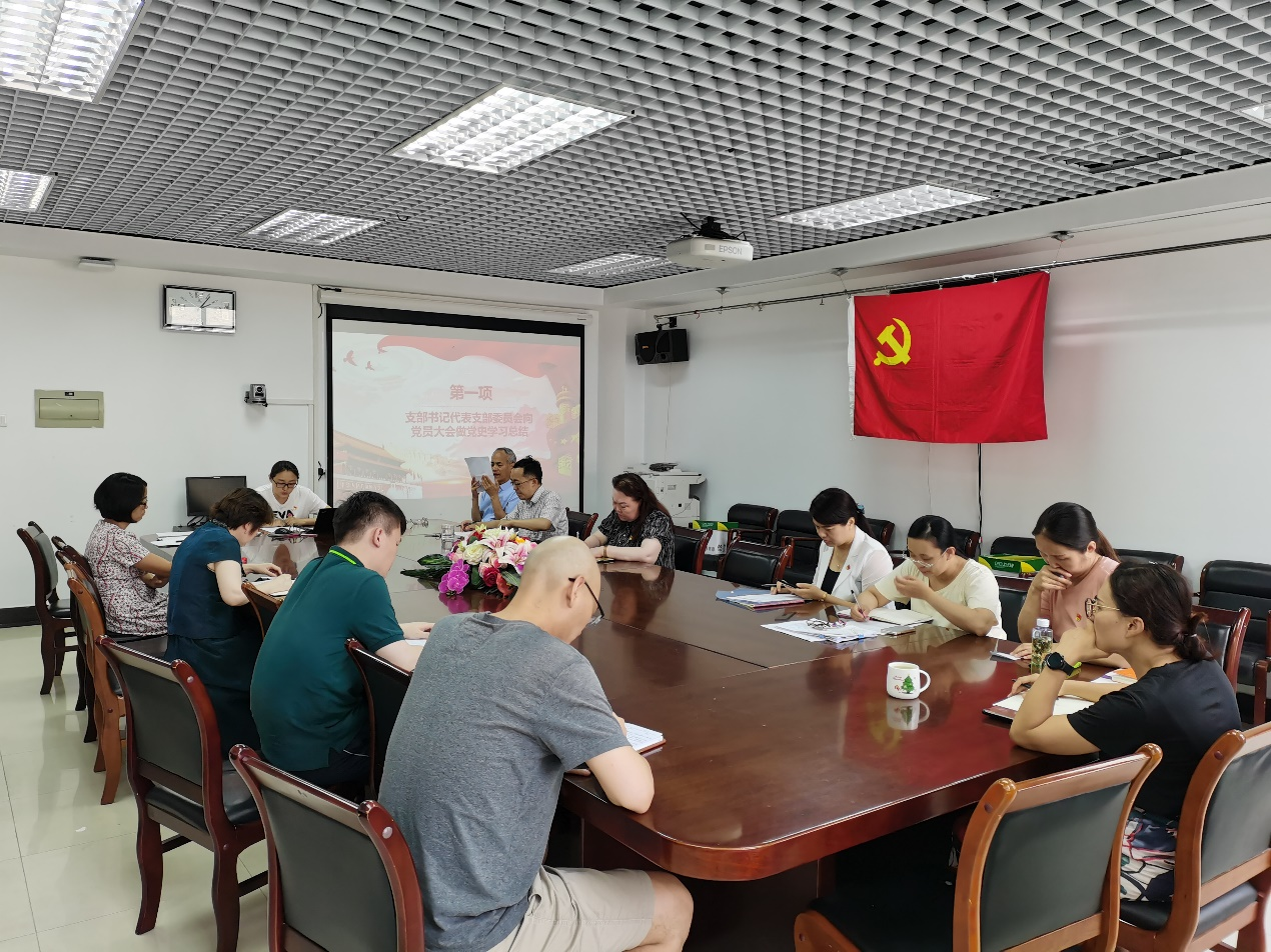首先,胡晔书记代表支部委员会向党员教师做党史学习总结。她从深入开展主题学习、灵活举行支部活动、积极开展对外交流活动、加强支部队伍建设、做好日常管理工作等六个方面总结了支部上半年围绕党史学习教育活动开展的各项工作,并检视了工作的不足,指出支部应加强对外的交流学习、加强理论学习和成果转化。