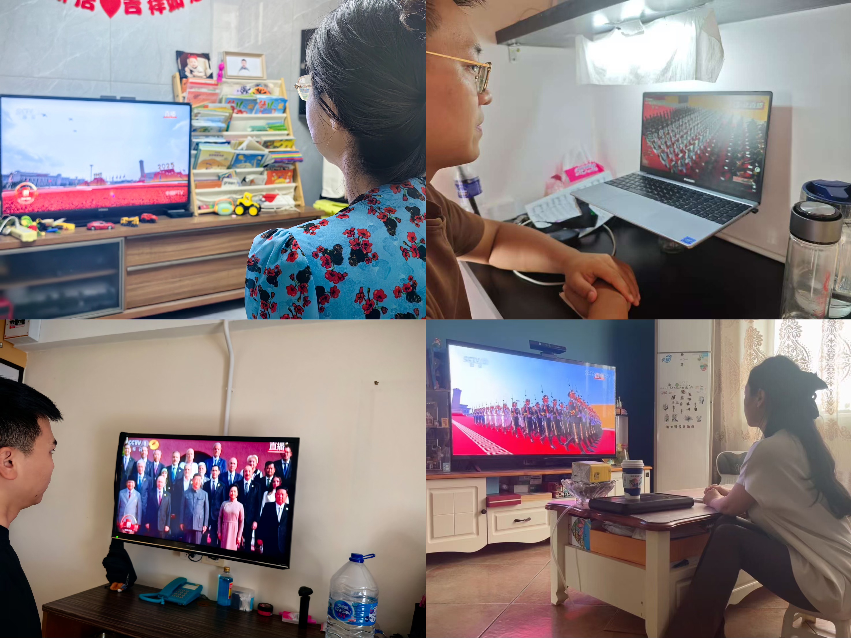 9月3日,纪念中国人民抗日战争暨世界反法西斯战争胜利80周年大会在北京天安门广场隆重举行,习近平发表重要讲话并检阅受阅部队,艺术学院教工第一党支部党员教师和音乐表演教研室的教师们早早守在电视机前,共同见证这场盛大阅兵。