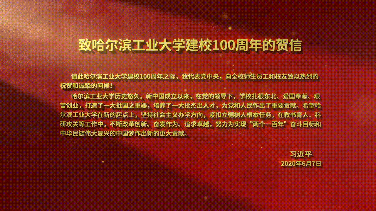 2020年6月7日,习近平总书记致信祝贺哈尔滨工业大学建校100周年。